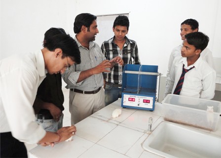 Pharmacology Lab:- This Laboratory is utilized to determine the action of drugs on the animal or its isolated tissues. The lab is well equipped with types of specialized equipments like Convulsiometer for testing anticonvulsant effect of drugs on rats and mice, Eddy’s Hot Plate for testing analgesic effect, Plethysmograph, rota rod apparatus and cooks pole climbing apparatus for testing antipsychotic effect, Single and double unit Organ bath with recording drums are utilized for experiments